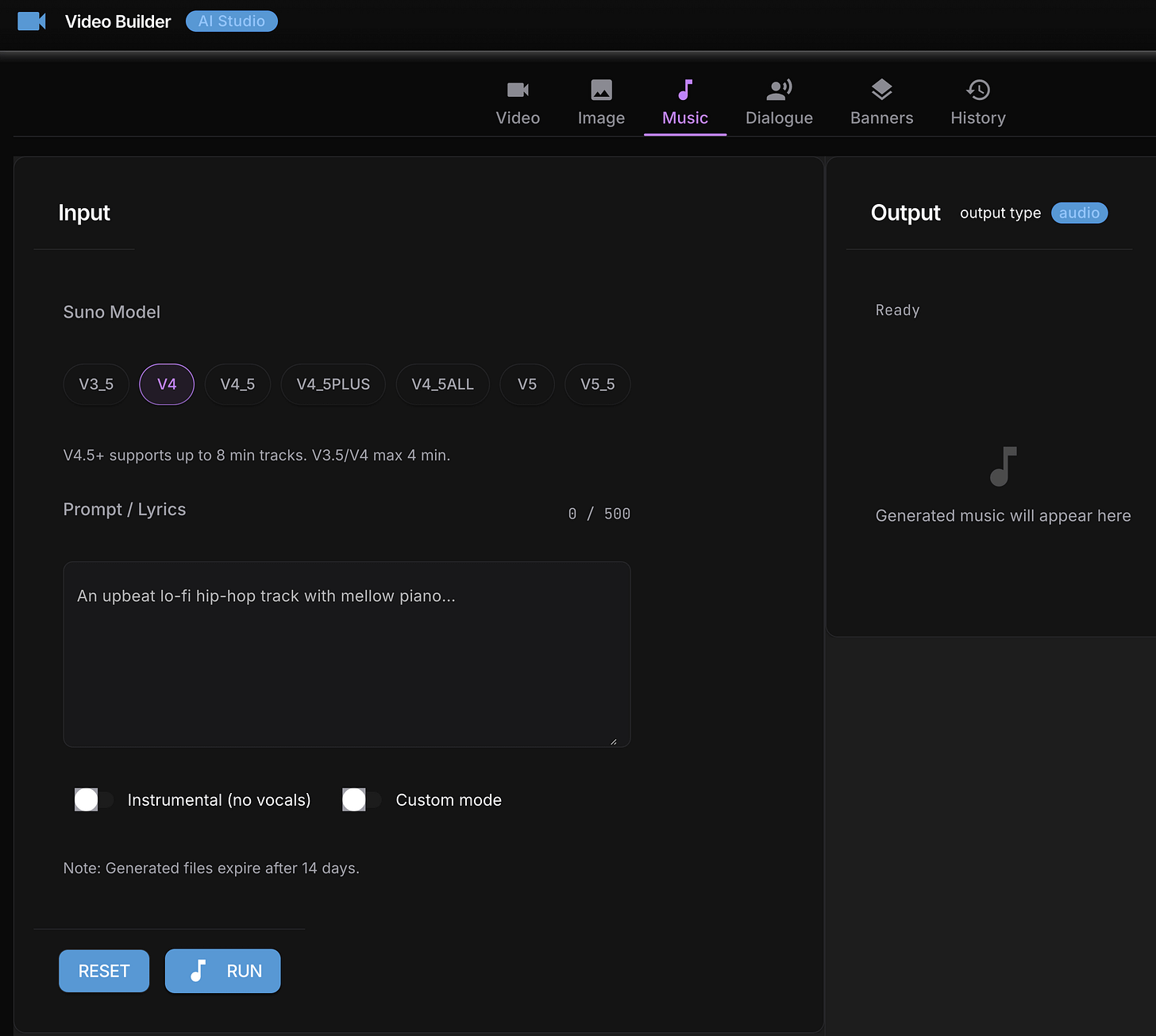 # Generate music (Suno AI)