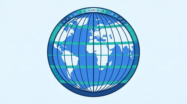 A flat-design globe icon with timezone band lines in blue and tealThe prompt engineering layer