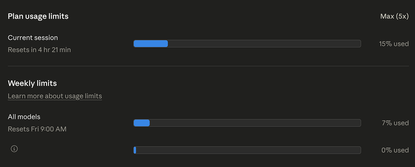 And Claude AI official usage which includes this chat session and others too.