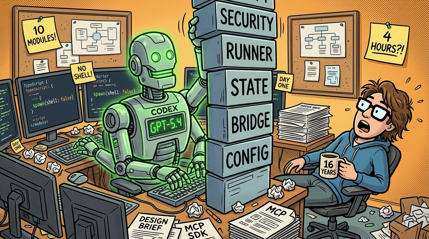 The interesting part: I did not build it alone. The Codex desktop app (GPT-5.4) wrote the initial implementation. Claude Code (Opus 4.6) tested it, found bugs, hardened it, and documented it. Two different AI models, collaborating on the same codebase, each catching what the other missed.