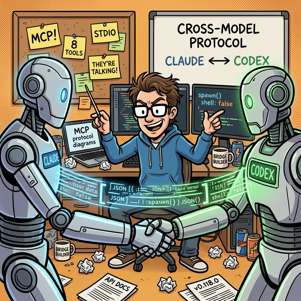 So I built a bridge. A full MCP (Model Context Protocol) server that sits between Claude and Codex, translating requests, managing run state, enforcing security boundaries, and handling all the rough edges of making two AI systems cooperate.
