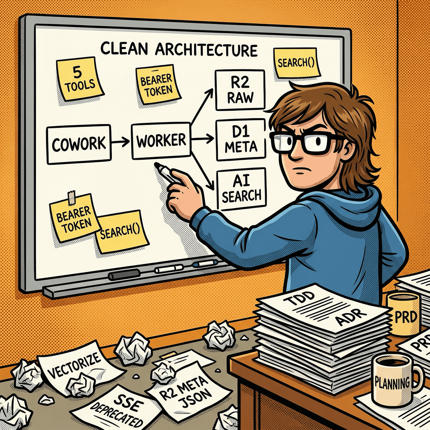 A complete TDD is a real handoff artifact. The planning documents worked well enough that GPT-5.4 could implement the entire Cloudflare Worker MCP server without needing clarification on architecture, tool surface, or security posture. That only happens if the spec is actually complete. Pseudocode, schema, Env interface, error handling rules – all of it mattered.