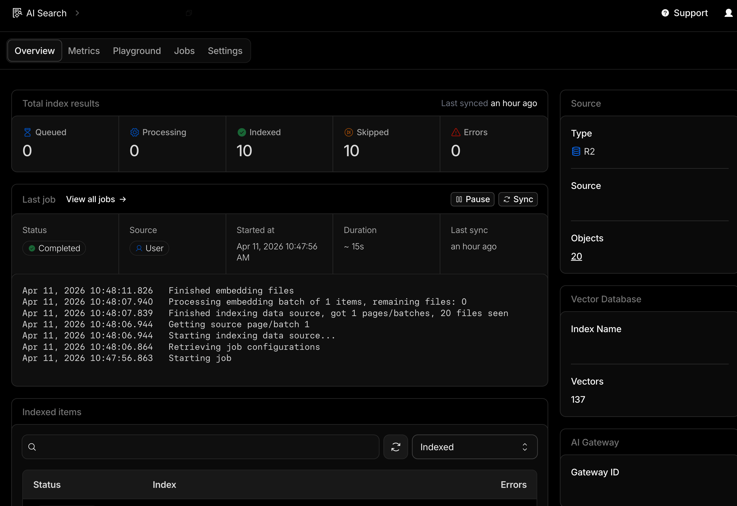 The sync gap that almost got missed: The original plan assumed Cloudflare AI Search indexed uploads in near-real time. A cross-model review (more on this shortly) caught that the default indexing cycle is every 6 hours. Cloudflare added a manual sync API in June 2025 with a 30-second cooldown. The Cloudflare Worker now calls that API after every backup.