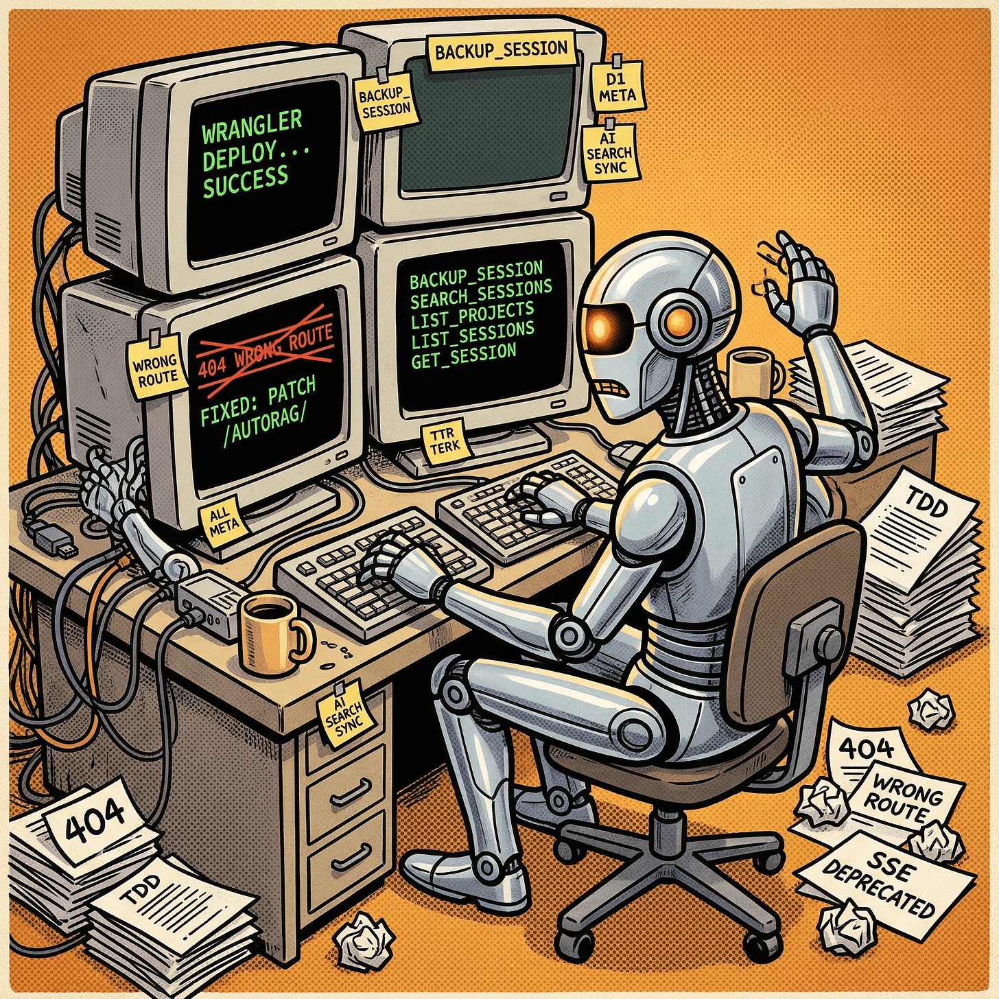 aiSearch() is deferred to a future ask_sessions tool that would give synthesized answers rather than ranked chunks. Useful for “summarize what I built in March” style queries against Cloudflare AI Search.