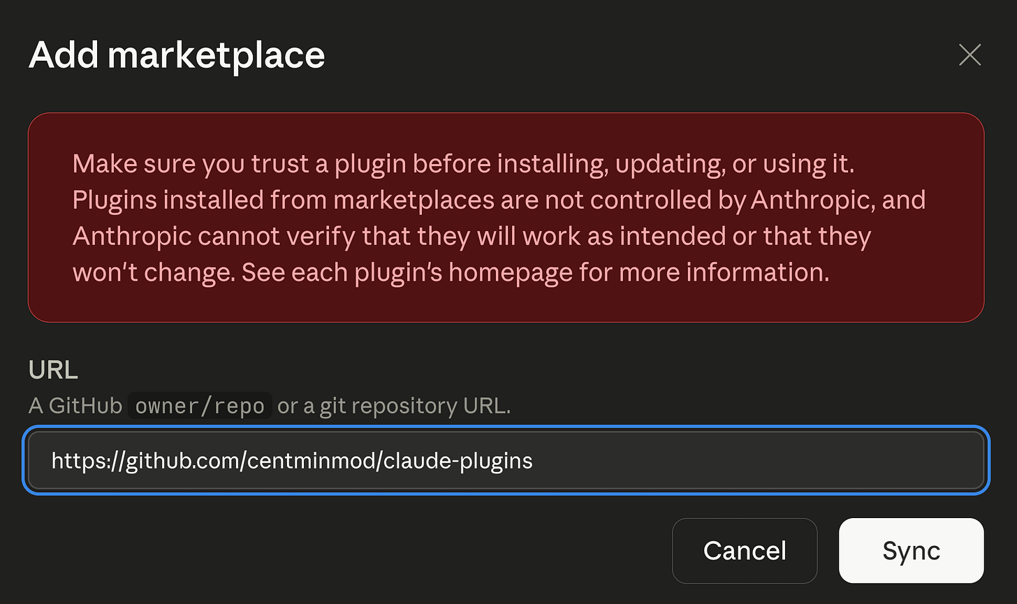 /plugin marketplace add centminmod/claude-plugins