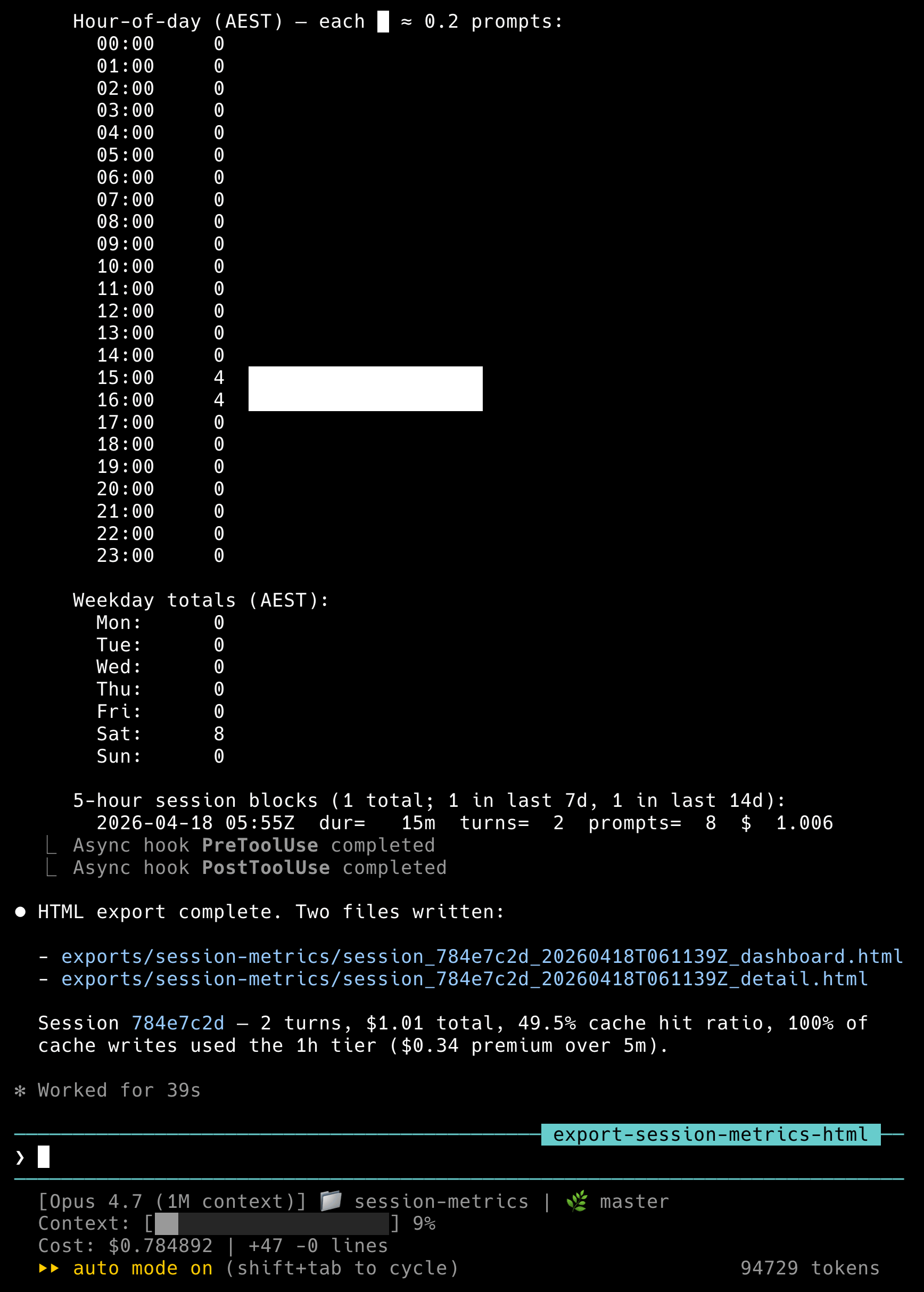Try the install, ask Claude “how much has this session cost?”, and let me know what the output looks like on a real workload. Bug reports and feature requests are welcome on the session-metrics GitHub issues tab.