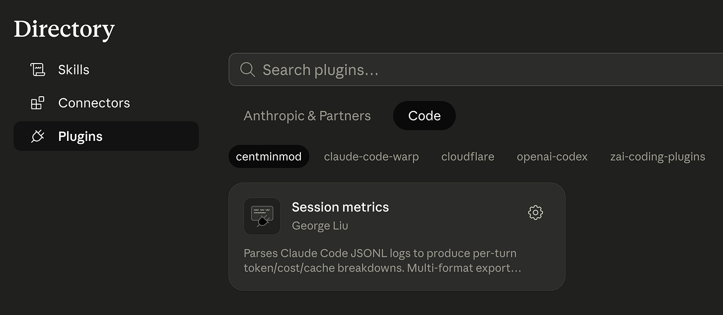 centminmod/claude-plugins is live. One marketplace add, one plugin install, and the session-metrics skill auto-triggers the moment you ask Claude Code how much a session cost