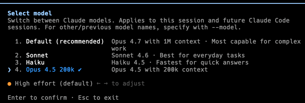 Stuck with Opus 4.7 in Claude Code? Get back Opus 4.6 or Opus 4.5 access via /model section