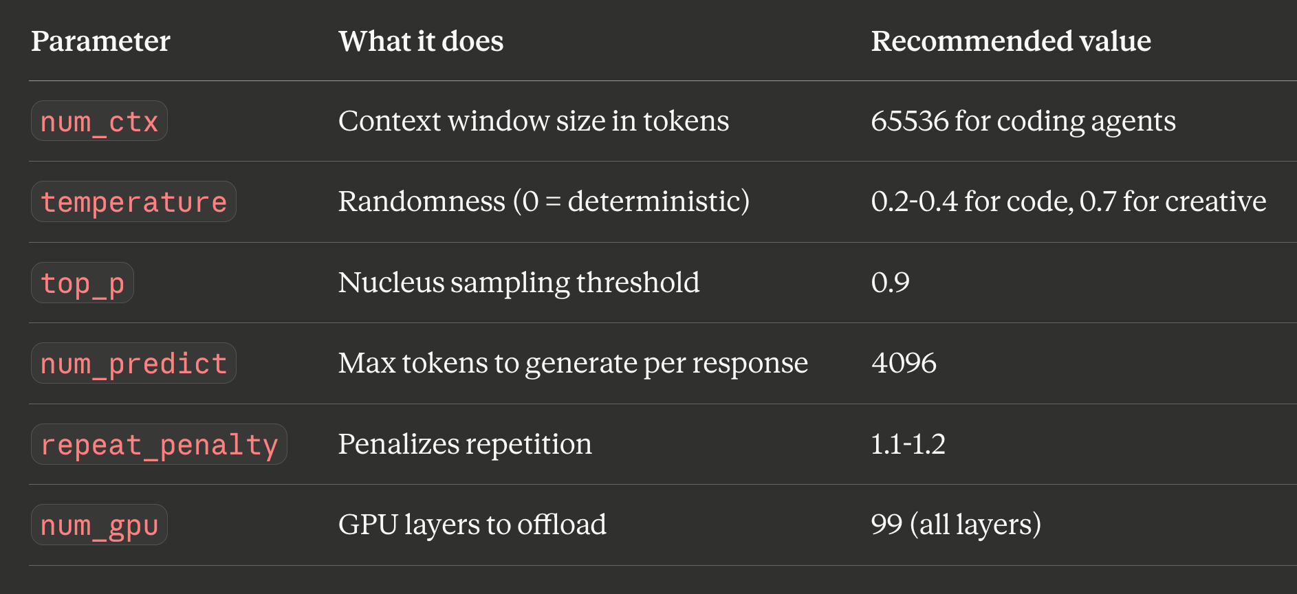 Key Modelfile parameters