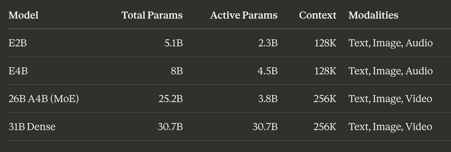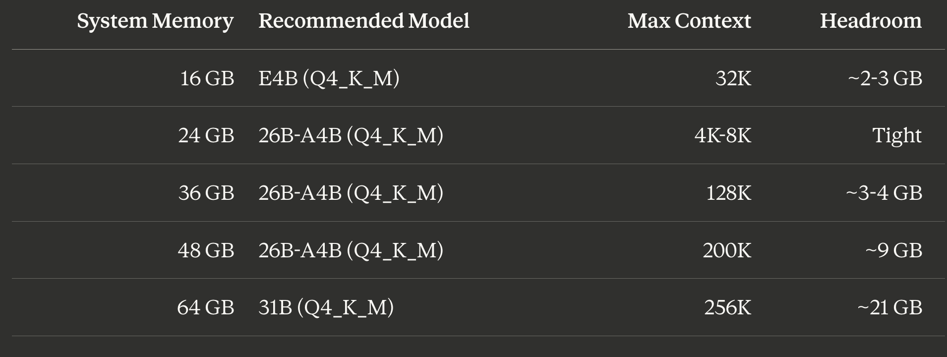 The MoE advantage is real. Gemma 4 26B-A4B activates only 3.8B parameters per token but delivers roughly 10B dense-equivalent quality. For local inference, this gives you the best quality-per-GB of memory. But still needs adequate available system memory.